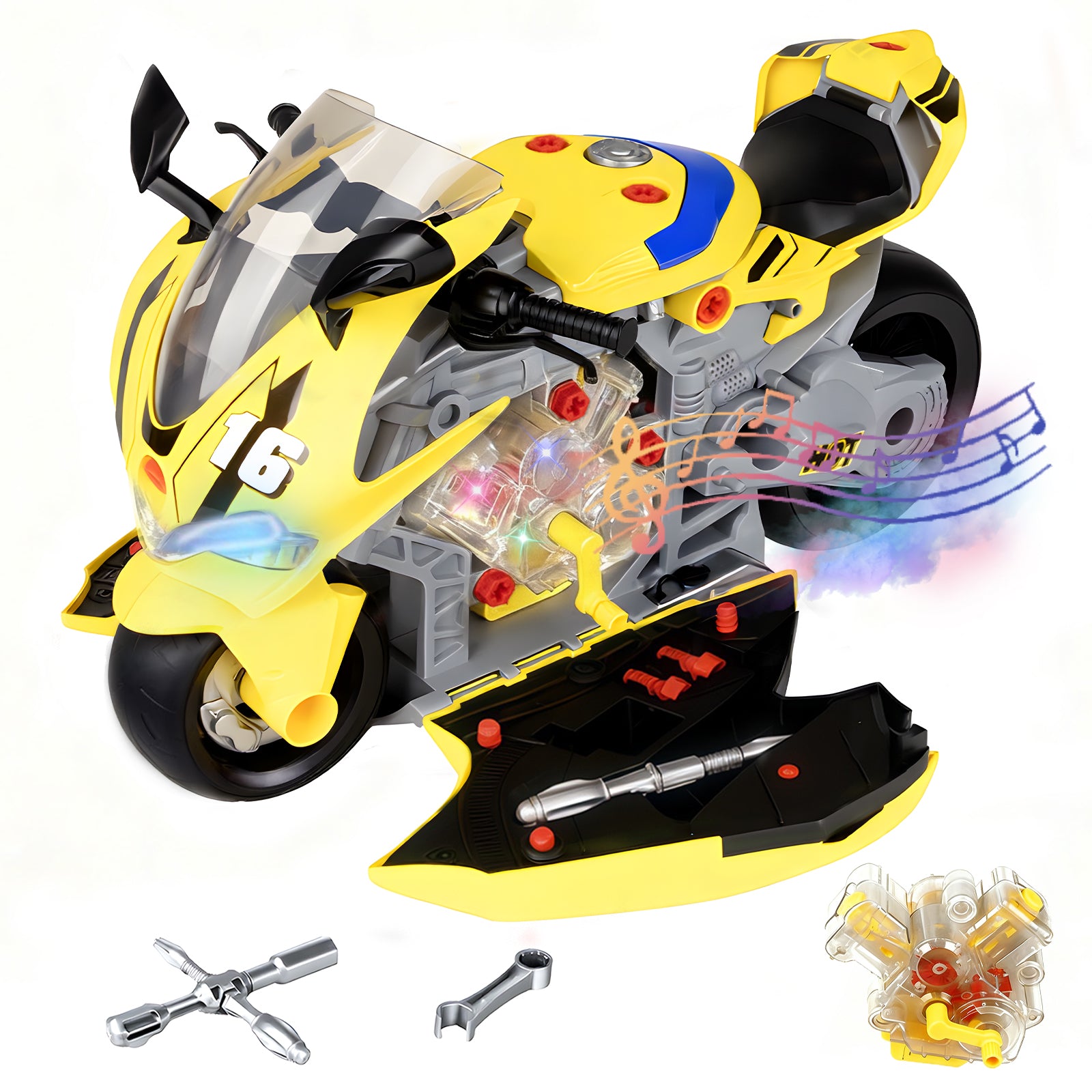 JoySpark Toys Take Apart Motorcycle Toys Kids Mechanic Repair Set for Toddlers 3-5, Interactive Toy Engine Building Kit with Sounds, Lights & Spray, STEM Educational Gift Toys for 3 4 5 6 7 Year Old Boys Girls